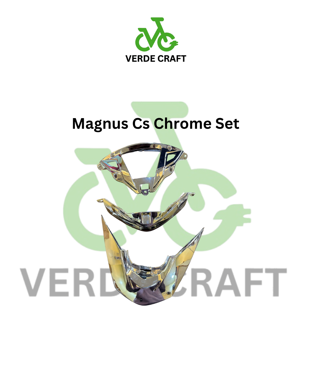 The Magnus CS Chrome Set from Verde Craft is designed to enhance the premium look of the Ampere Magnus CS electric scooter. This chrome set adds a stylish, glossy finish to the scooter, improving its overall appearance while maintaining durability. Made from high-quality chrome-finished material, it offers excellent resistance to rust, fading, and daily wear, making it ideal for both replacement and customization.